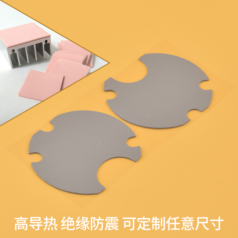 模切圆形5W高导热硅胶片,具有柔软自黏,回弹性佳,高变形量,低渗油率与高可靠度的特点,且安全环保,是用量极高的导热产品。