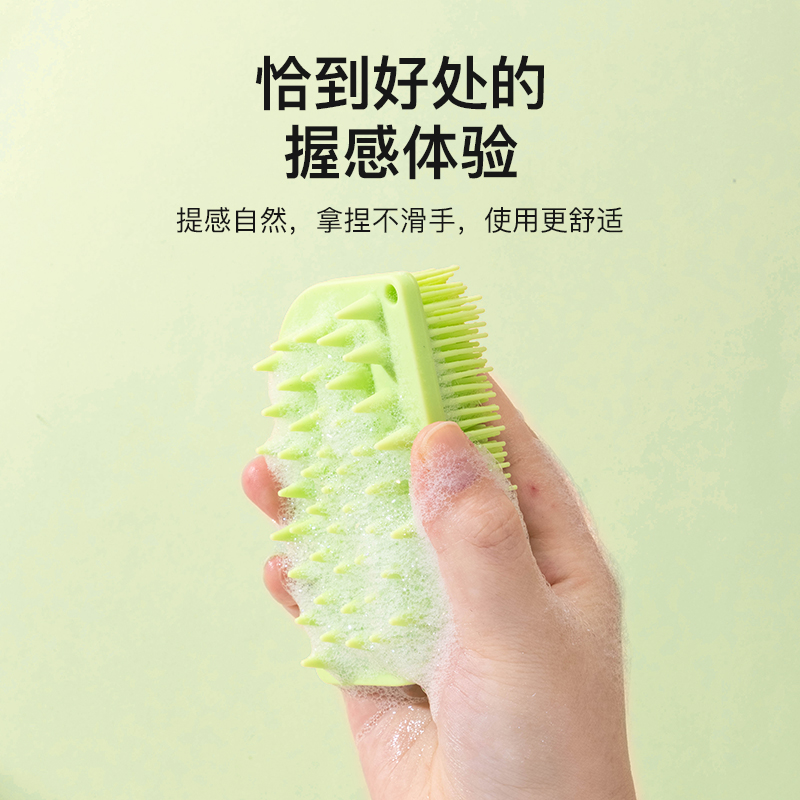 「方寸之间」硅胶洗头刷——你的专属头皮按摩师。科学排列尖头按摩齿,深层清洁同时舒压放松。 食品级硅胶材质,干湿两用不伤发丝。正方形镂空设计,握持更稳不滑手。【舒适体验升级】人体工学弧度贴合掌心,省力设计,单手轻松操作。浴室/旅行都能用的护理神器,安全无毒,母婴皆可用。"让每次洗头都变成享受的3分钟SPA"。从发丝到头皮的全方位呵护~