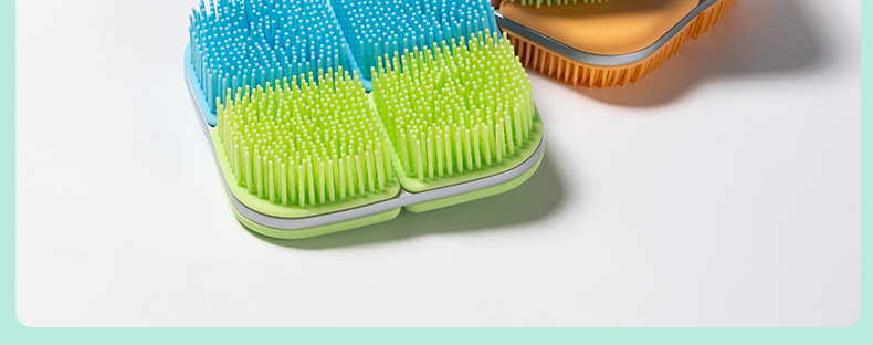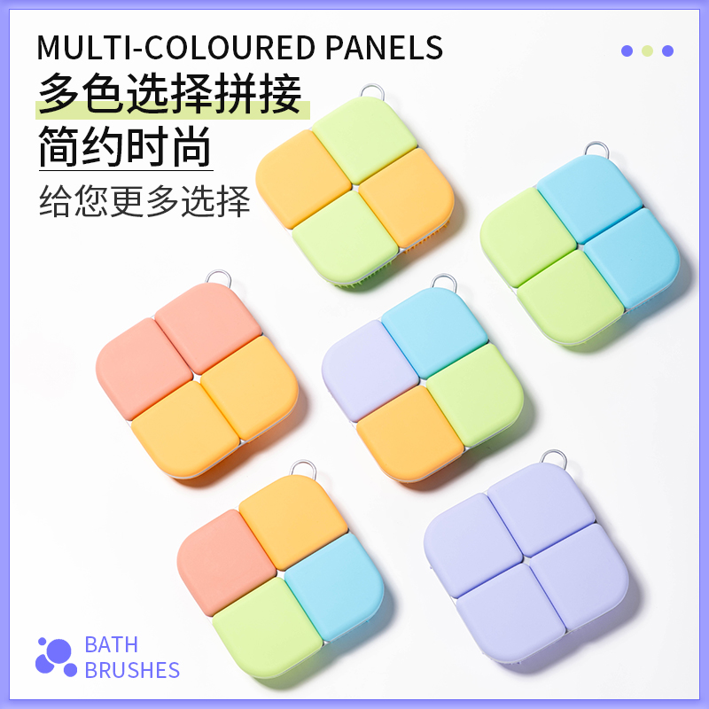 「马卡龙色块」方形硅胶洗澡刷——把浴室变成你的时尚秀场。【高颜值设计】马卡龙色块拼接, 纤细方形轮廓+悬挂挂钩,为浴室增添一抹ins风时尚感。超密集细软毛刷阵列,婴儿般亲肤触感,0刺痛感设计,敏感肌也能安心用。背面镂空挂钩,沥水不发霉。"像握着一块云朵洗澡"